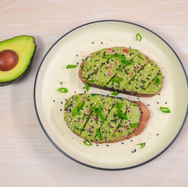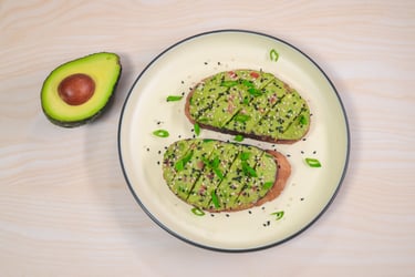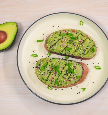 Talk of the town creamy avocado mixed with a unique seasoning on two slices of sourdough toast