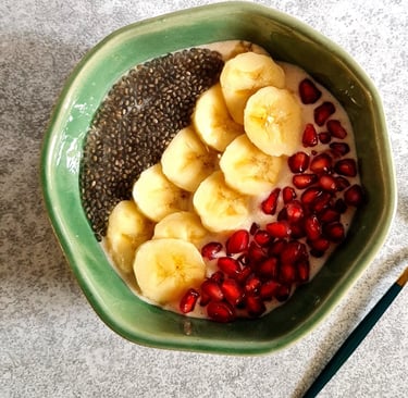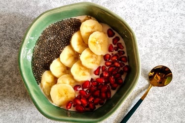 30gm of protein in a 120gm high protein yogurt blend. Served with seeds & banana. Protein : 30gm