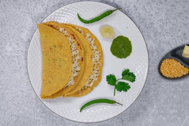 High protein & flavorful flatbreads served with a filling of high protein paneer & base of Besan