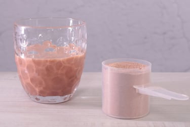 A scoop of double chocolate protein blended with milk. Protein : 24gm