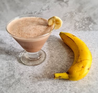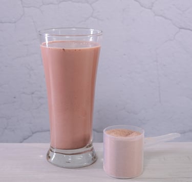 A scoop of double chocolate protein blended with banana & milk. Protein : 24gm