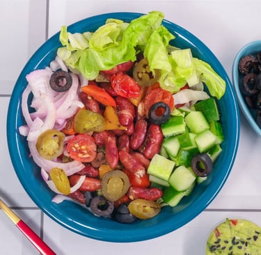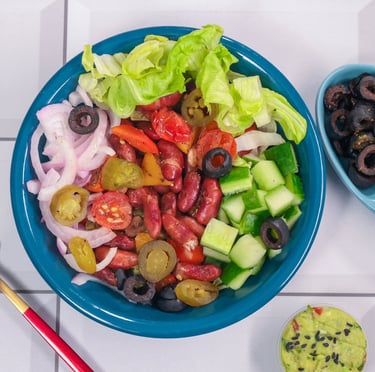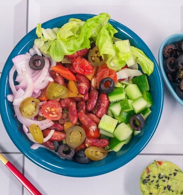 Classic mexican salad with a side of guac for the zest. Protein : 15gm